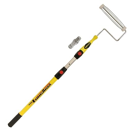 The final tip I have is to use an extension pole for your paint roller. We are able to unscrew the handle from our push broom & use it as an extension for our paint roller. It again, saves me time from having to drag the ladder around the room to paint the top half of the room. Instead, I can paint the whole wall using the long pole.
